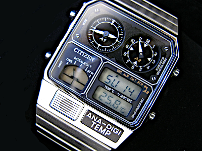 ![]() JG2101-78E movement: 8989 製品情報(国内モデル:レコードレーベル) 1982年から販売され一世を風靡したアナデジ(海外モデルの販売は現在に至るまで継続されていたと思う)。たぶん、数年前から国内でもレトロ(スペースエイジ)ブームに乗り復刻され数々のセレクトショップなどが別注モデルを販売。今やファッションアイテムのように扱われている部類の時計。 以前から気になってはいたのだが、最近シチズンの復刻ライン「レコードレーベル」に組み込まれたのを機に購入してみた。 腕に付けるまで半信半疑だったのだが、なるほどファッション系バイヤーが目を付けるだけあってデザイン的にはコレで完成しているように思える。微妙なチープさもスチームパンクを感じさせ、ノスタルジーを呼び起こす(これが若年層には新鮮なのだろう)。 最近、買ってよかった時計の1本になりそう。 時間の視認性云々はナシで(笑)。 ![]() |
